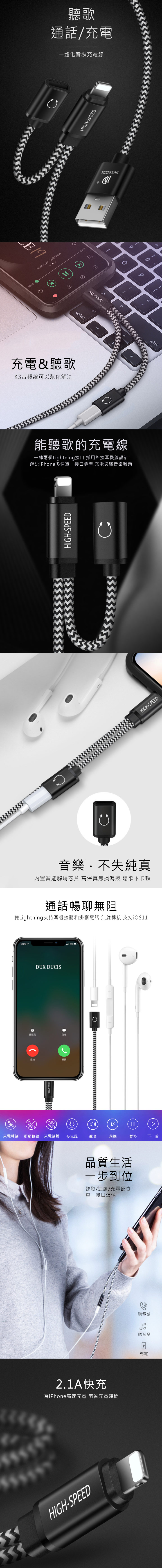 . 內 容 物 :K3 Lightning 音頻充電線*1